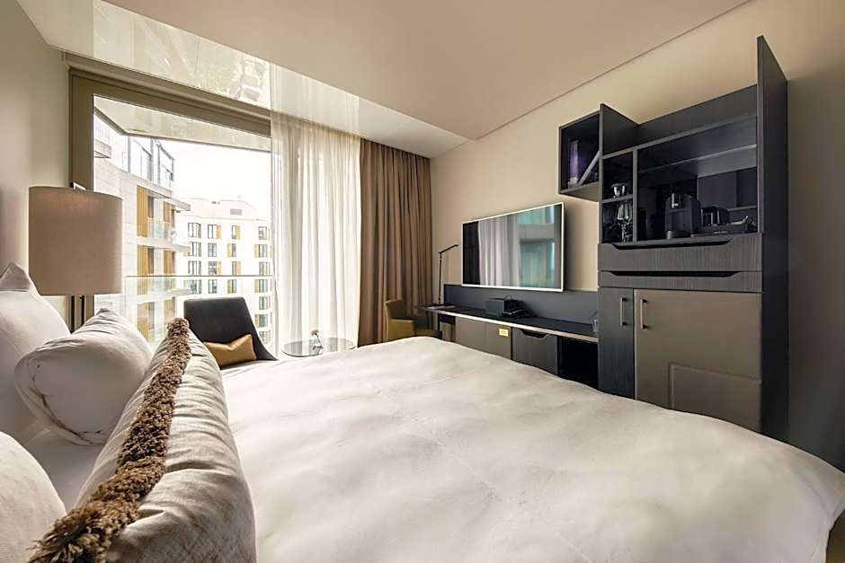 The deluxe rooms are spacious and airy with views over the canal and the city. The marble bathrooms have a bath and a separate rainforest shower. Details such as bathrobes and slippers are also included, as well as a Nespresso machine and a 42-inch plasma TV.